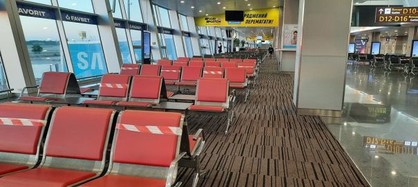 В самом Борисполе при входе сканируют багаж и тут же тебе меряют температуру, как только проходишь металлодетектор. В помещении аэропорта обязан находиться в маске, но у многих она висела на подбородке или нос был не прикрыт. Людей мало и как такового столпотворения не было. Кроме нашего еще несколько утренних вылетов. Так что кресла в зале ожидания пустовали. Через одно они оклеены лентой, чтоб соблюдать социальную дистанцию. Дьюти фри работал полным ходом.