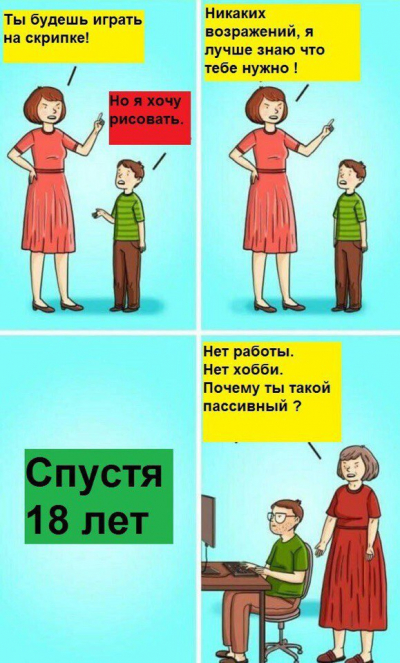 Однако даже понимание себя ничего не гарантирует. Одна знакомая всегда хотела играть на гитаре, но как-то все не до того — работа, дети, заботы… Дети купили ей гитару. Она все равно не играет, хотя уже на пенсии, дети разъехались, забот немного.