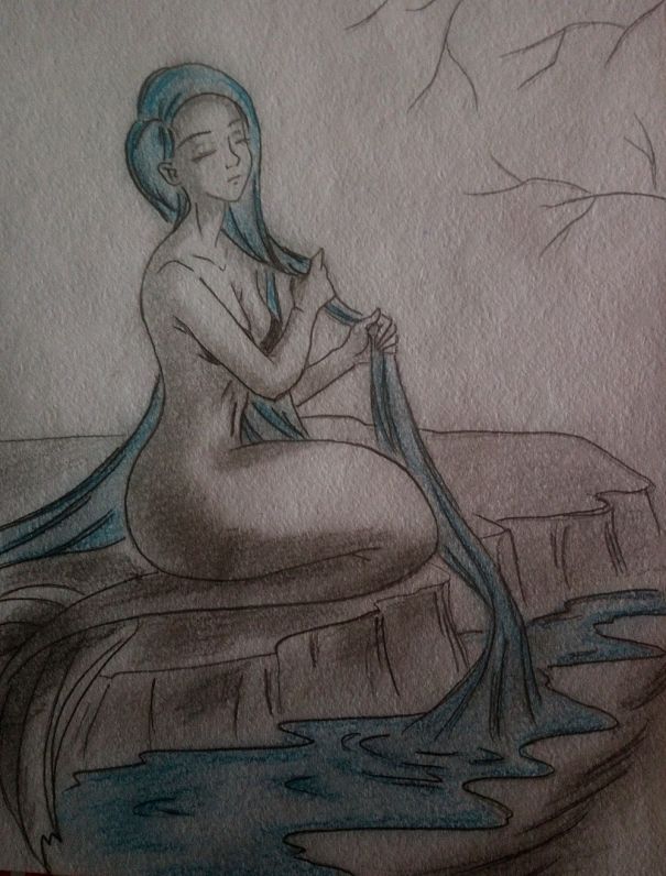 Сначала хотела сделать так, что русалка, как вода, появляется из потока)))