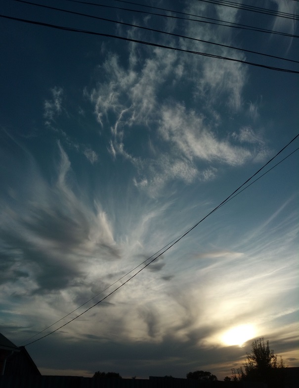 Там была такая красота из облаков, все переснять не удалось. С одной стороны — это, а с другой — было почти чистое небо и три облачка, похожих на перья