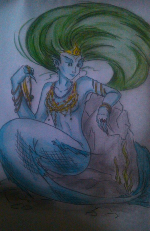 а, да, точно!Хотела сначала нарисовать ее сидящей на сундуке с сокровищами, а потом решила, что будет жирно ей