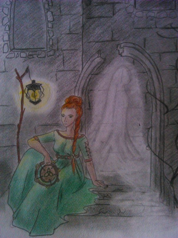 одинокий несчастный призрак молодой женщины, нашедшей свою смерть в темных подземельях замка(