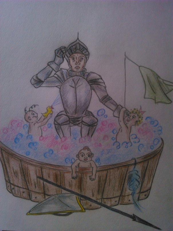 И рыцарям надо мыться, а за малышом пусть доспехи присмотрят