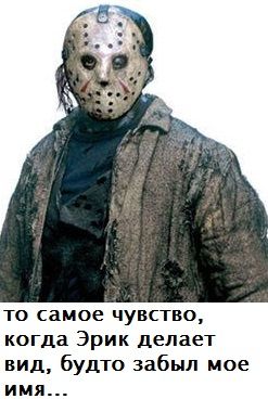 Я не знаю, почему)) Но просто Джейсон. Тот самый. Над которым глумились детишки из лагеря и который утонул, а потом стал маньяком с мачете и хоккейной маской))) В «нужное» время и в «нужном» месте кучка ассоциаций зачем-то встретилась с парочкой совпадений, и у меня в голове появилась картинка, где ему все такие «давай в лодку, прыгай», а он такой «ыыЫ-ыЫы… убивать… ыы..» и… короче, все, забудь)))