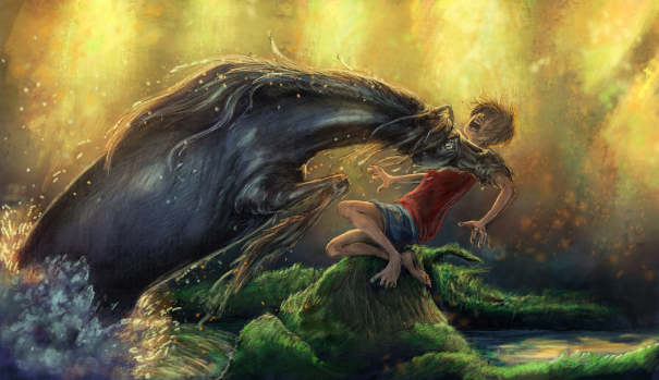 У меня их полно. Кельпи, хвост как у рыбы, передние лапы — как у коня. Утаскивают всадников под воду и жрут живыми.