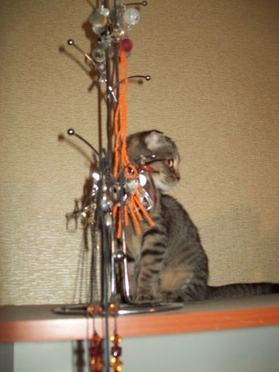 кстати, моя котя подрастает и начинает интересоваться украшениями