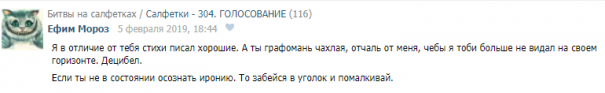 Если он был Ефиму — сочувствую. Мне тоже такие писали, но я же в ответ не стала кидаться подобным. А Ефим стал. Вот разница.