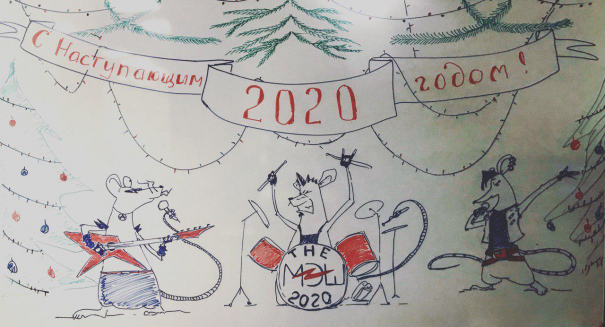 Не ну а чё? Это же год металлической крысы. Мета-а-а-л!!! У меня вот коллеги нарисовали к НГ в офисе:
