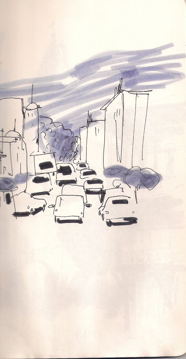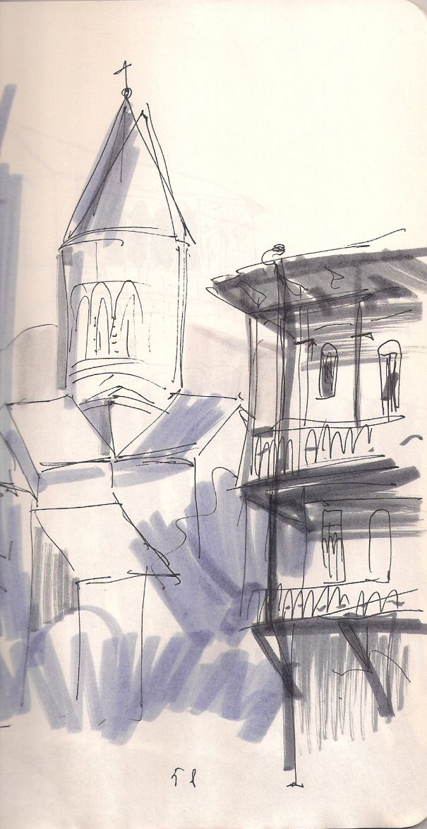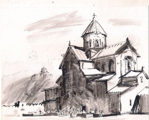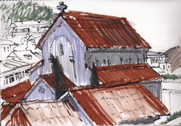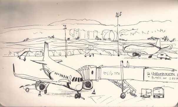 Удивил местный стиль вождения. Народ гоняет по городу и бибикает. На такие мелочи, как пешеходный переход, никто внимания не обращает. Делаешь морду кирпичом и идет, не глядя на машины. Мы попали на автобусную экскурсию по городу. Не понравилось, старый город очень маленький и автобус не может повернуться на узких улочках. Поэтому мы час стояли в пробках в той части города, где улицы пошире. Но там смотреть нечего, сталинская советская застройка «Посмотрите, налево театр имени такого-тошвили, а направо театр имени того-тоадзе». Но пока мы стояли, можно было рисовать