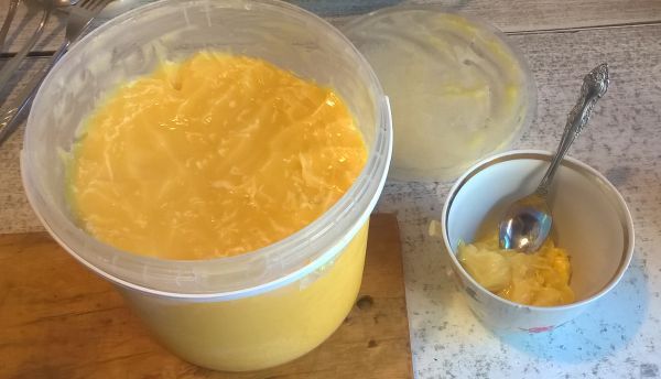 1. Настрогал немного мёда — пусть греется, а то сильно твёрдый