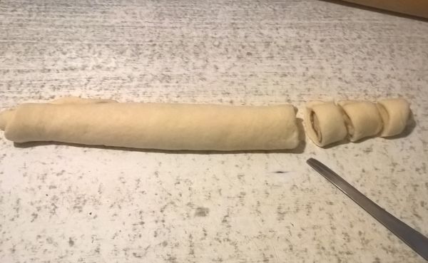 10. После чего получившиеся роллы выпекал на масляном противне 15 минут при температуре 180-200 градусов по Цельсию.