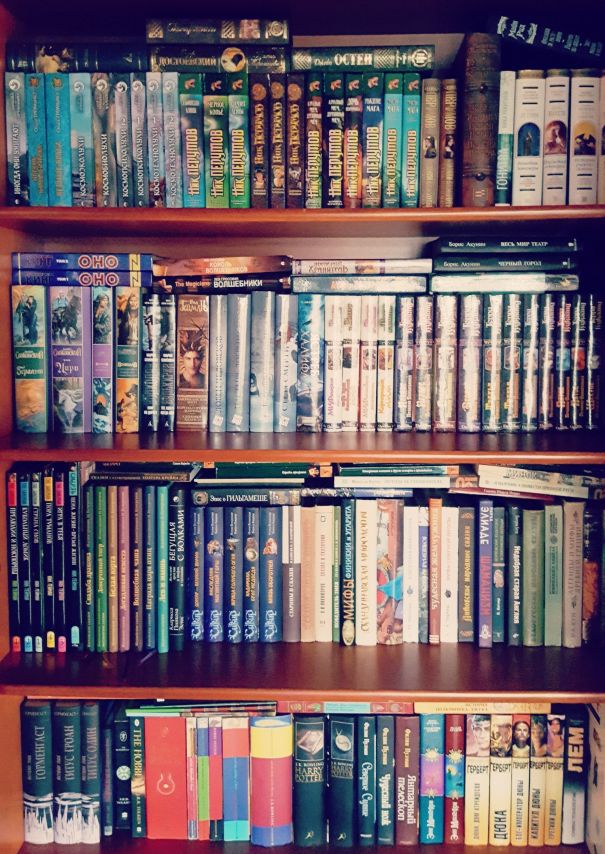 Сегодня переезжала свои книги со старого места жительства. Часть пришлось оставить до лучших времен, но надеюсь, они там выживут до того светлого момента, когда я смогу их всех разместить у себя. Да, я понимаю, что я повторюха-тетя-хрюха, но удержаться не могу. Ибо обожаю их всех: