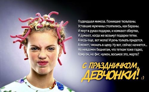 Понимаю, что среди дам есть масса таких, кто не считает этот день праздником, и ещё больше таких, которые считают, но от этого ещё больше его ненавидят. Но не поздравить не могу. По-своему, конечно. По-бермански.