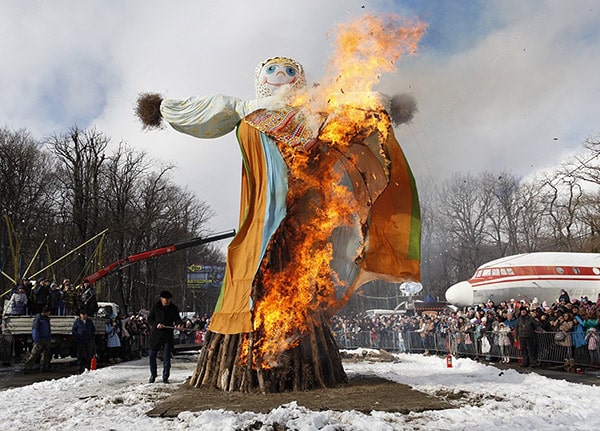 Празднование Масленицы на Руси после принятия христианства изменилось мало. Во время гуляний люди по-прежнему рядились в медвежьи шкуры, разжигали костры и делали лепешки. Когда научились готовить дрожжевое тесто, стали печь блины. Употребляя блины, люди верили, что съедают кусочек солнца и получают божье благословение, как в древние времена. Сохранилась традиция поджигания праздничного костра от солнечного луча. Его ловили при помощи линзы и направляли на кучку сухого хвороста. Зажженный от солнца огонь наделялся древними людьми божественной силой. Он передавал им энергию дневного светила.