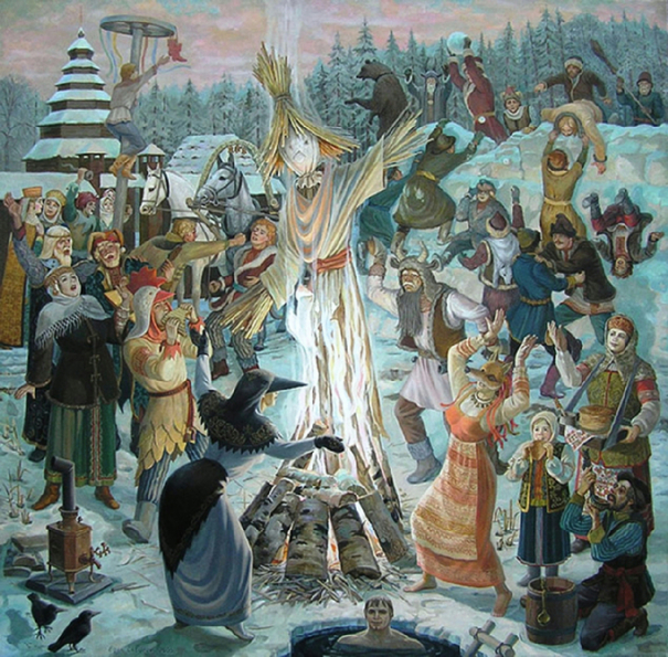История возникновения Масленицы тесно связана с языческой древнеславянской Комоедицей. Празднование Комоедицы начиналось за неделю до дня весеннего равноденствия и длилось еще неделю после него. В те времена у славян самым почитаемым зверем был медведь. Его называли Комом и считали воплощением языческого бога Велеса. С весенним пробуждением медведя после зимней спячки оживала природа, и приходило тепло.