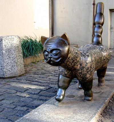 Скульптура шагающего кота — покровителя желающих забеременеть девушек в Латвии. Красивая сложилась легенда, не зря же говорят про женщин: плодовита как кошка.(надеюсь никого не обидела этим)