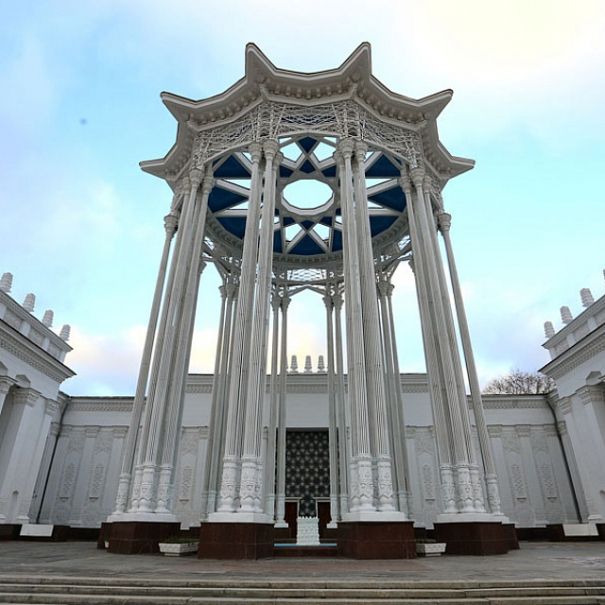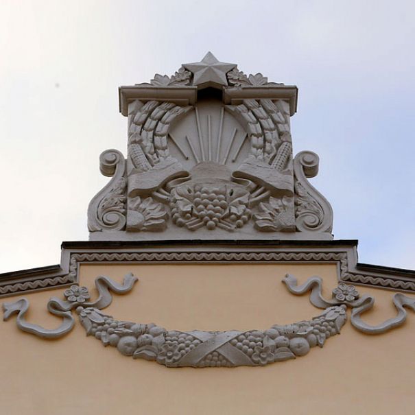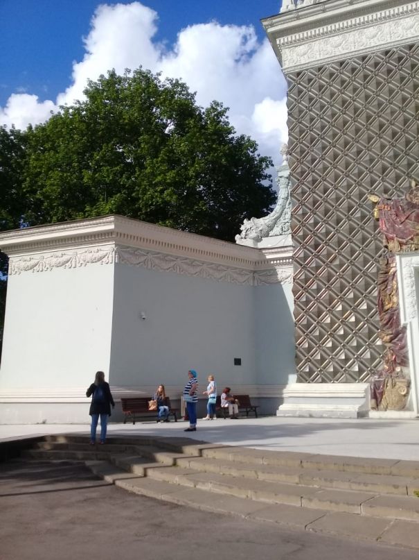 Павильон «РСФСР» был построен по проекту архитекторов Р. Бегунца и С. Никулина. Здание по стилю напоминает храм-памятник советской эпохи в честь победы на военном и трудовом фронтах. Это один из самых пышных павильонов, которые надо смотреть со всех сторон.
