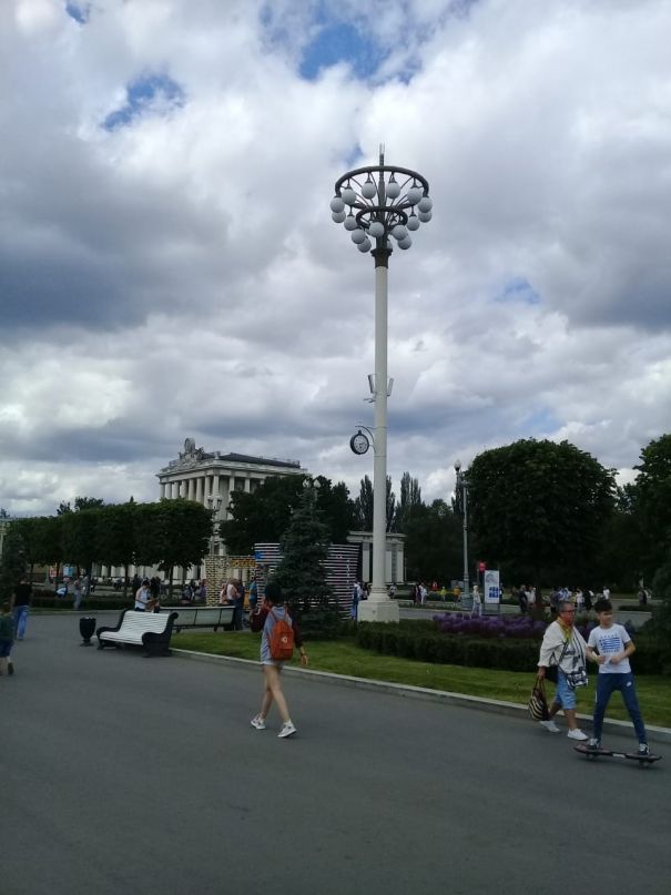 Несколько видов фонарей, специально спроектированных для ВДНХ, украшают ее территорию.