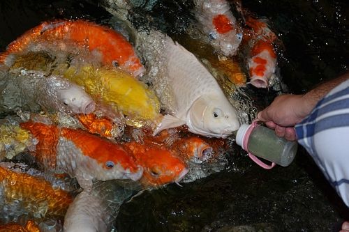 Вспомнила, в Таиланде туристам предлагают таких рыбок покормить из бутылочки молоком. Они прям кидаются, из воды выпрыгивают, толкаются.