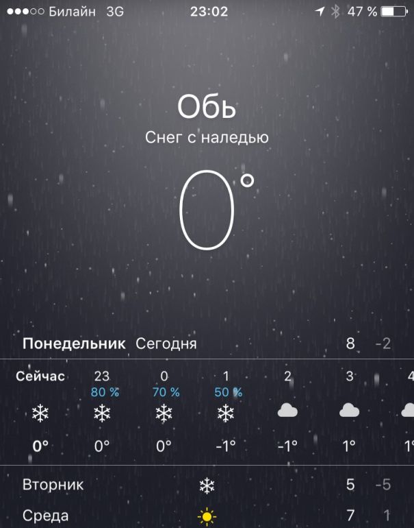 Сейчас снег идёт, и это при том, что на прошлой неделе было +29
