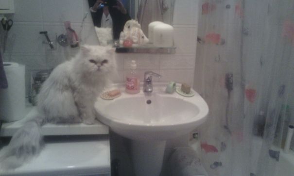 И что я должен думать?Какой там умываться… воду пить пришла, ждёт пока кран откроют. Иначе придётся вот так: