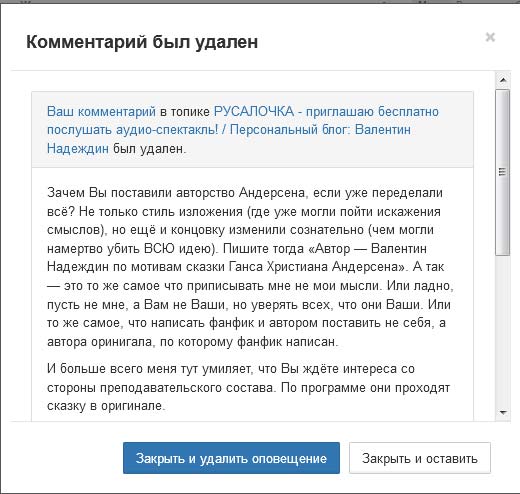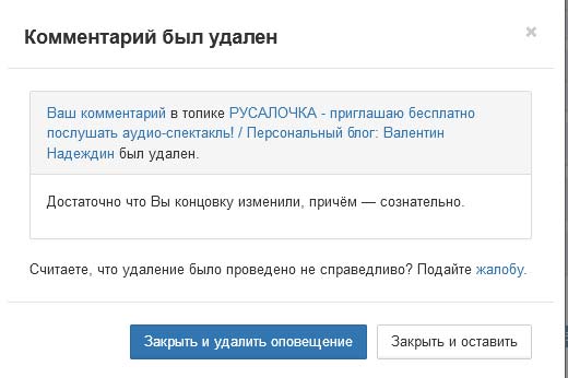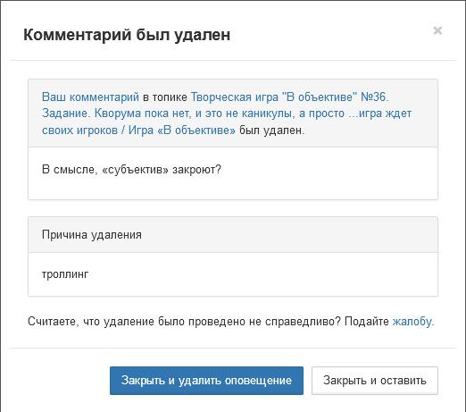 Нет, не стала бы вешать из-за одного удалённого комма в Объективе, но тут мне удалили ещё два, так что, пусть будет для комплекту.