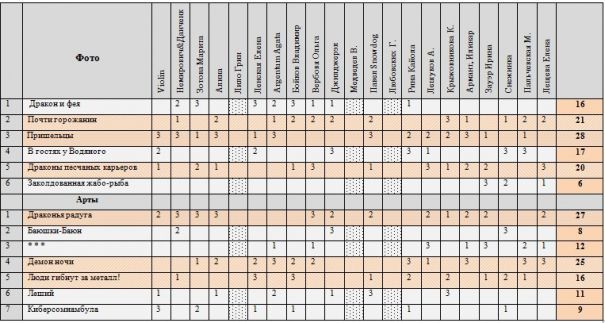 Не проголосовал еще один участник, пока что, ориентировочно до 15.00 мск., жду и доделываю таблицы.
