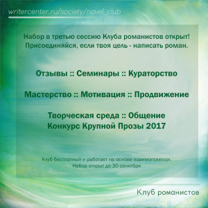 Цель клуба — создания рабочей атмосферы и поддержка авторов крупной прозы.