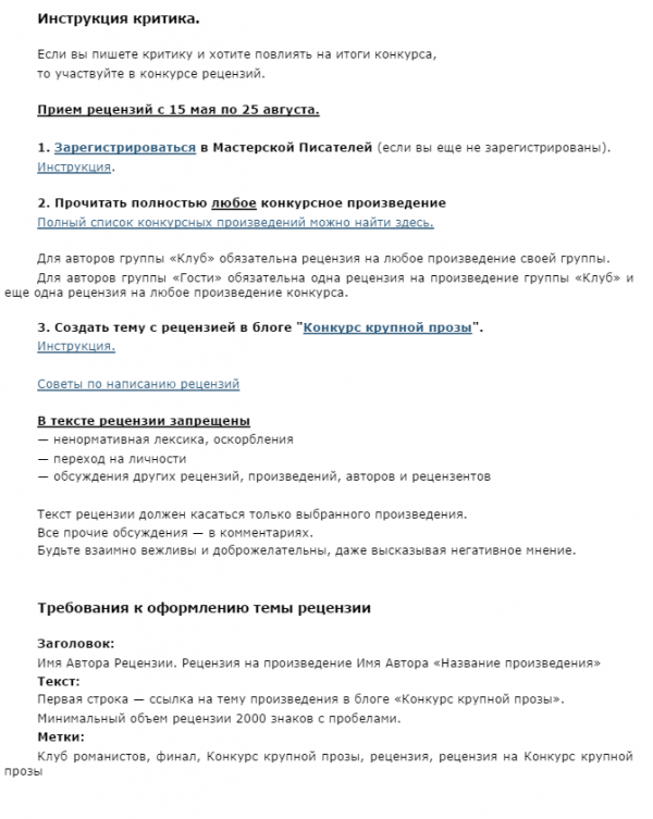 Вместо того, чтобы написать пошаговую и ясную инструкцию к написанию рецензий, в правилах оставлена китайская грамота с кучей ссылок, в которой черт ногу сломит и я уже мульён раз давала пользователям в ЛС ПРОСТУЮ пошаговую схему.
