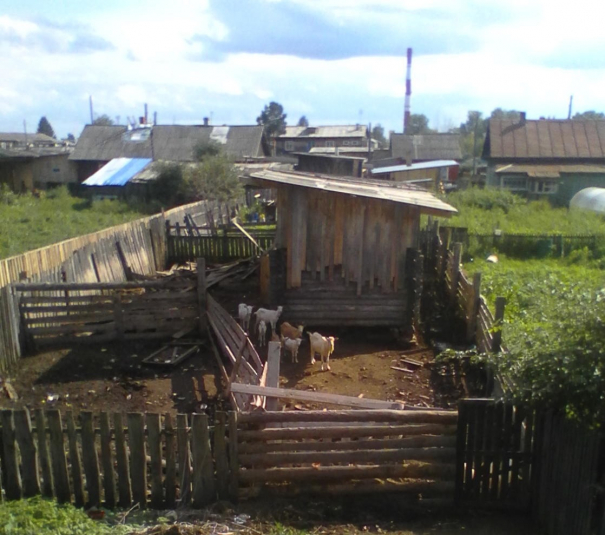 Заметили чей-то загончик, подошли — там три хрюши, пока с ними беседовали, прискакали козлики… посчитали – семь.