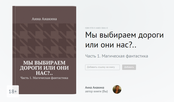 «Рыжий мёд» — это как первый ребенок, отпущенный в жизнь, хоть и имеет море недостатков. Обожаю ту серию, что сейчас пишу – «Мы выбираем дороги или они нас?..» — хотя сейчас перерыв большой получается, но первая книга ушла на Ридеро. И ведь эта серия родилась от одного слова – кажется, 4 номер ты объявляла под названием «Дороги» — сразу пришла идея, думала, будет рассказ, а он как начал расти и остановиться не может.