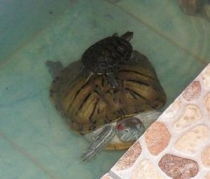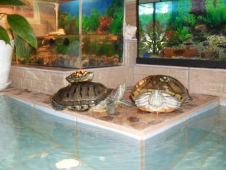 он не просится, он плавает, коготки о стекло чешет, нельзя вытаскивать, к тому же вижу панцирь выпирает, рахитик уже присутствует.