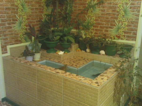 Это у нас такой бассейн небольшой построен в зале, они там и обитают.