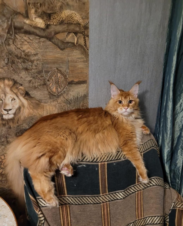 Зравствуйте! У меня есть котёнок. Её зовут Лиса. Она ещё маленькая- на этом фото ей ещё нет и годика. Один метр от носа до кончика хвоста и 5кило весом. И конечно кисточки мейн-куна!!!!