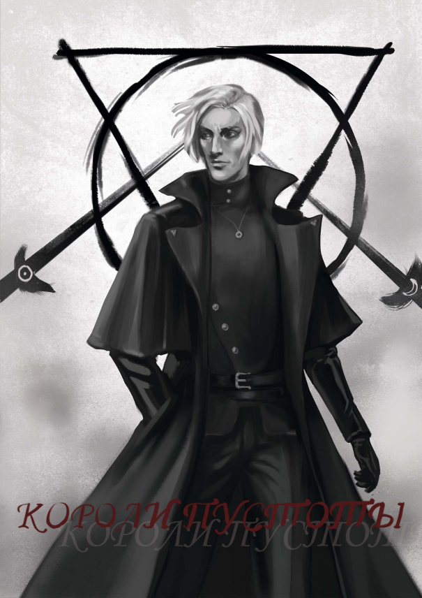 Друззя, чтобы не впадать в скромность, должна сообщить что обложка, которую вы можете увидеть на странице романа, всецело моих рук дело и я ей страшно довольна. На обложке изображен Девариан — он просто не оставляет меня равнодушной, — и символика Короны. На самом деле практически рандомная, значки подбирались по простоте, подобию с алхимическими символами и просто чтобы хорошо и мистично смотреться. На этом все