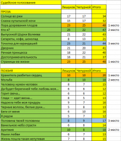 А теперь о победителях. Может, виной тому только двое судей, но у нас два победителя в «Прозе» на первом месте: