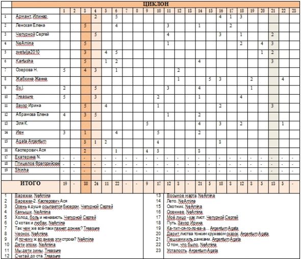 2 – NeAmina «Камыши». 24 балла (Все остальные места тоже у этого автора-суперциклонщика, потому на третьем следующая по количеству баллов после NeAmina работа).