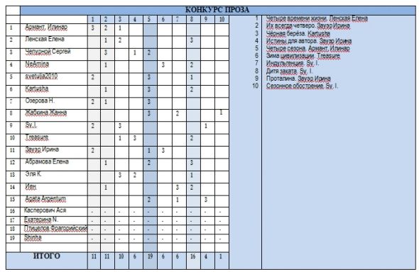 3 – Ленская Е. «Четыре времени жизни», Зауэр И. «Их всегда четверо». По 11 баллов.