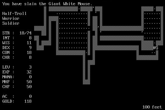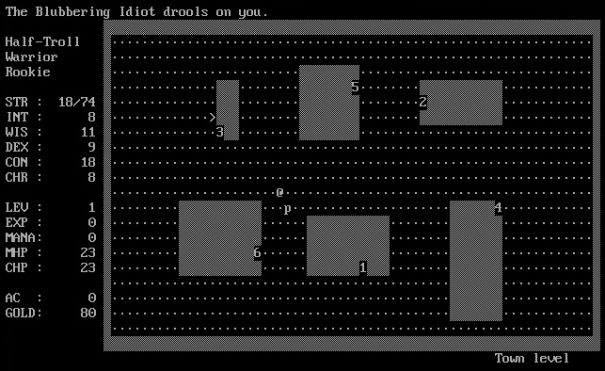 Одним из самых ярких клонов стала Moria. Цель игры отличалась от Rogue – нужно было убить главного злодея, Балрога из бестиария Толкиена. Кроме того, игрок начинал в городе, в который периодически возвращался из подземелий, чтобы продать награбленное.