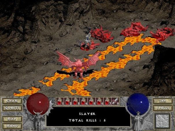 И пусть первая Дьябла состояла всего из одной деревеньки Тристрама и подземелий Собора из шестнадцати уровней (подвал, катакомбы, пещеры и Ад), и финального уровня с Дьяблой, многим она показала пример бесконечного игрового процесса, дала возможность играться с героем и после победы на главным чудищем.