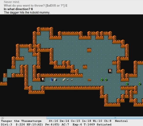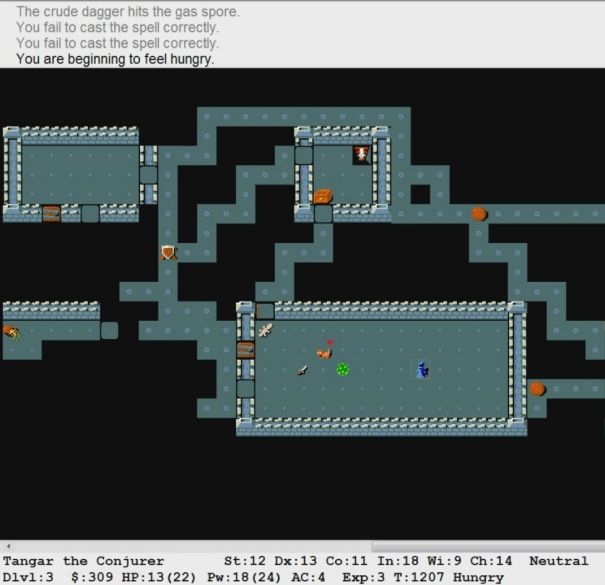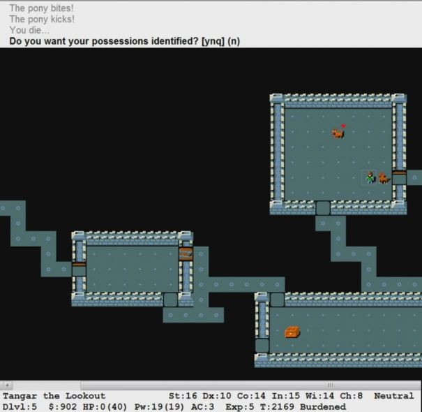 Расписывать возможности игры и ситуации, в которые попадает ваш персонаж, можно до бесконечности. Точно также как и пересказывать нелепые смерти. Новички умирают вNH очень часто. Забавно, что когда вы начинаете заново, есть шанс, что вы встретите свою тушку из прошлой игры, недобитых врагов, выломанные двери и другие остатки жизнедеятельности.