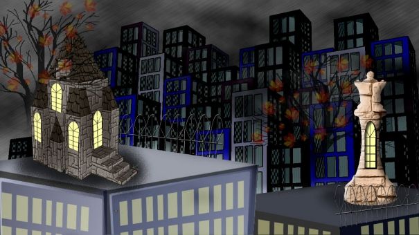 А вот и целый мультфильм. Сырой. Его ещё исправлять и исправлять. Анимацию получше сделать, чтобы все двигались, руками-ногами махали. С музыкой чего-ньть сделать, потому что теперешняя музыка годится для атмосферы бездушного мегаполиса, но у меня там еще книга скачет, ей чего-нибудь классическое надо.