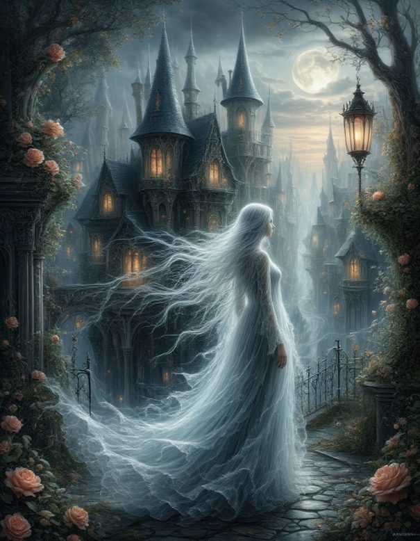 Ночь. Восходит бледно-жёлтая, с красноватым отблеском луна — неверная свеча влюбленных, круглое окошко в иной слой реальности, тусклый светильник мира мертвых.